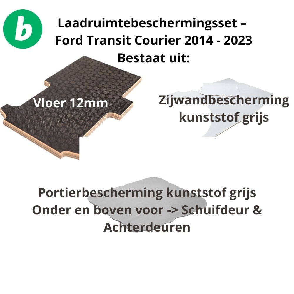 Zoek je een duurzame en strakke afwerking van de laadruimte van je Ford Transit Courier van vóór het nieuwe model? Deze complete beschermingsset is speciaal ontworpen voor het oude type Ford Transit Courier (bouwjaar 2014 t/m 2023) en biedt alles wat je nodig hebt voor een professionele afwerking én optimale bescherming.