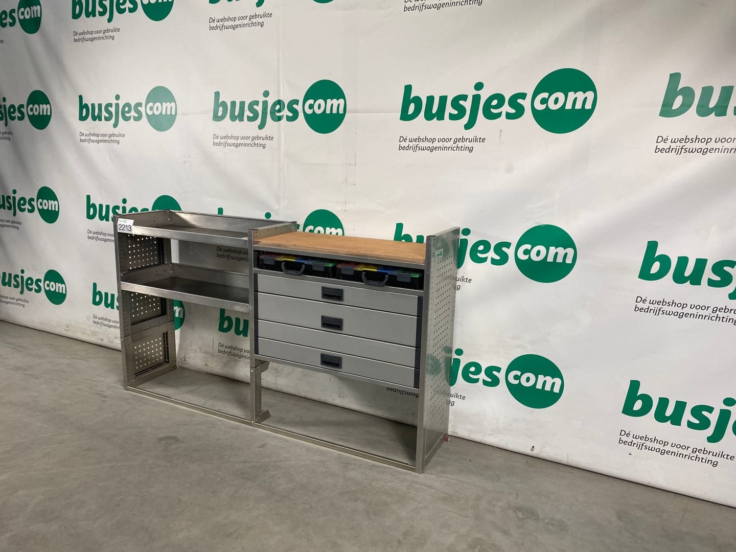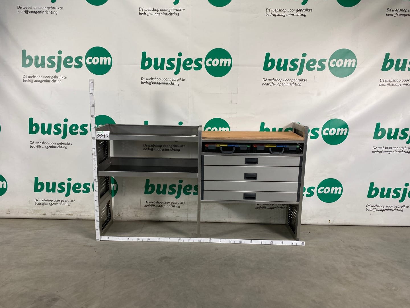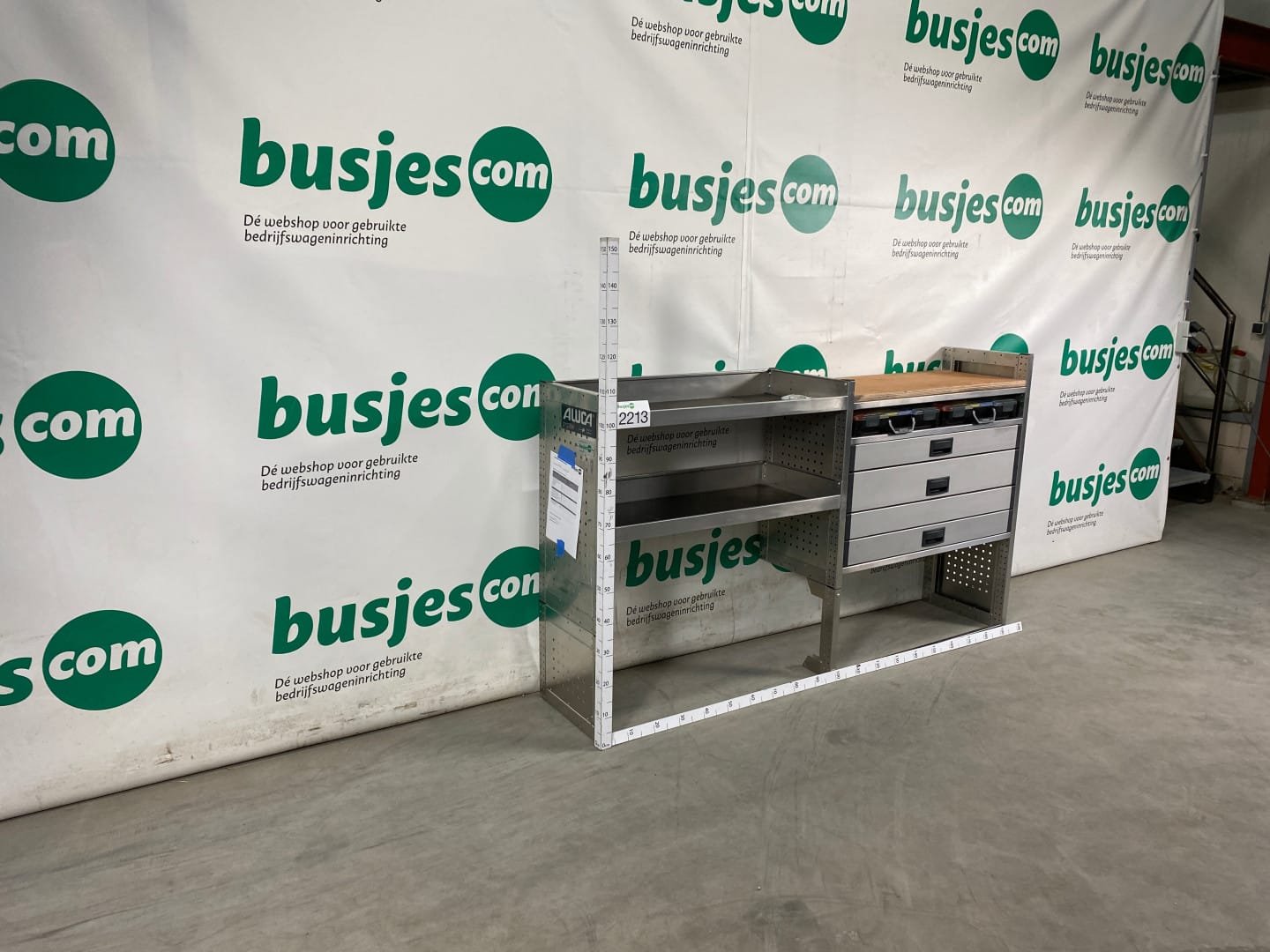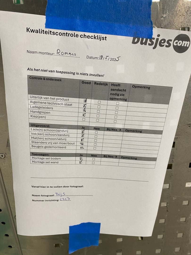 👉 Belangrijk: dit is een gebruikte inrichting. De staat is goed, maar check de afmetingen goed. Meet je voertuig zelf na of laat het doen, zodat je zeker weet dat het past.