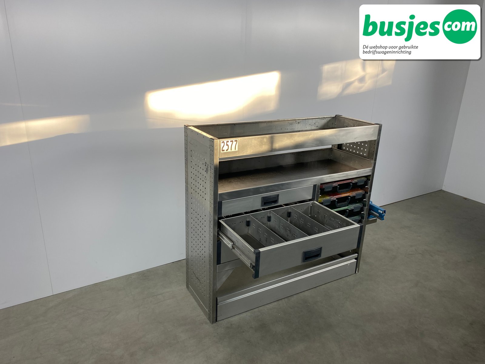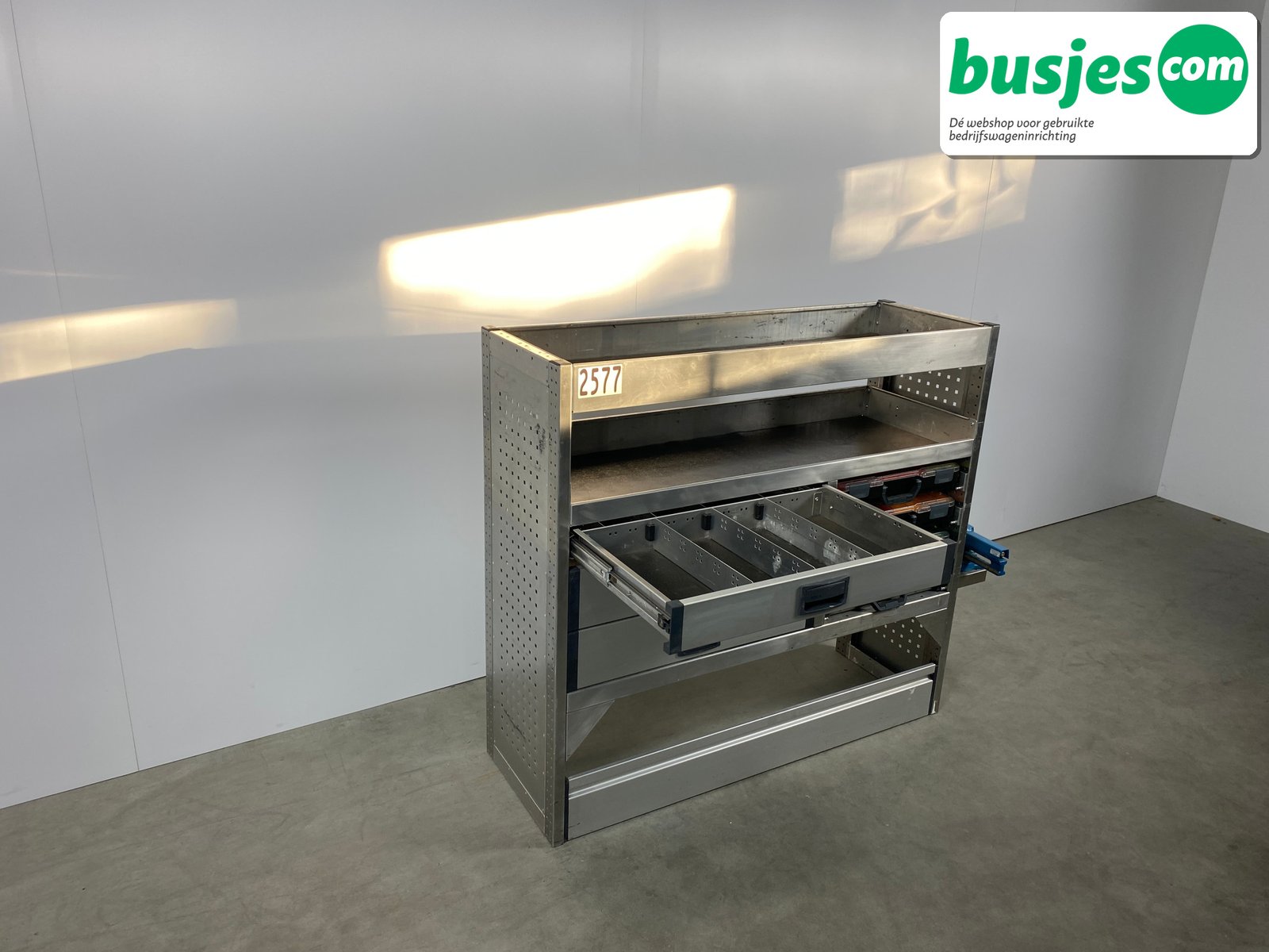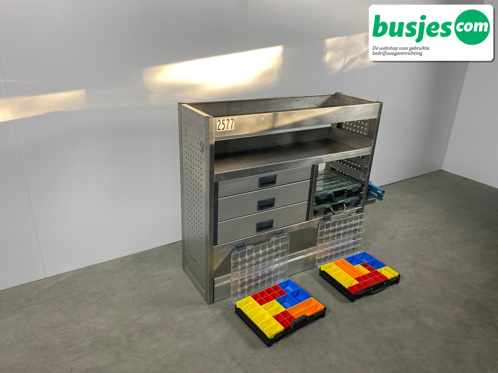 👉 Belangrijk: dit is een gebruikte inrichting. De staat is goed, maar check de afmetingen goed. Meet je voertuig zelf na of laat het doen, zodat je zeker weet dat het past.