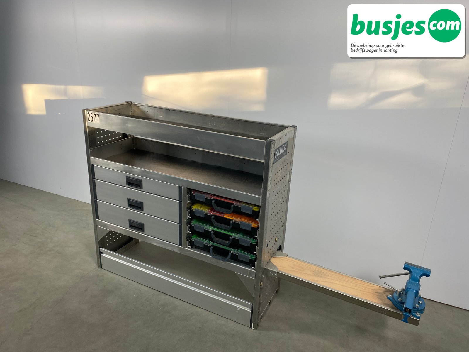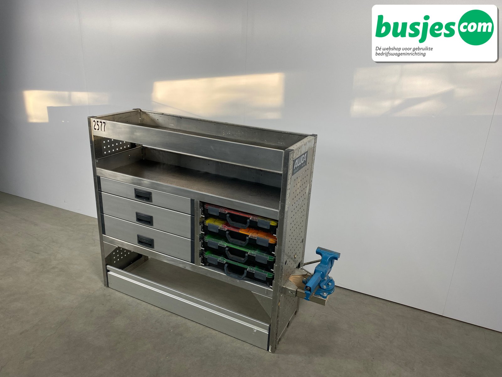 Deze gebruikte Aluca aluminium bedrijfswageninrichting is nog in topvorm. Gemaakt om lang mee te gaan én klaar voor een tweede ronde. Licht in gewicht, sterk als staal, en perfect voor het overzichtelijk vervoeren van je gereedschap en materiaal.