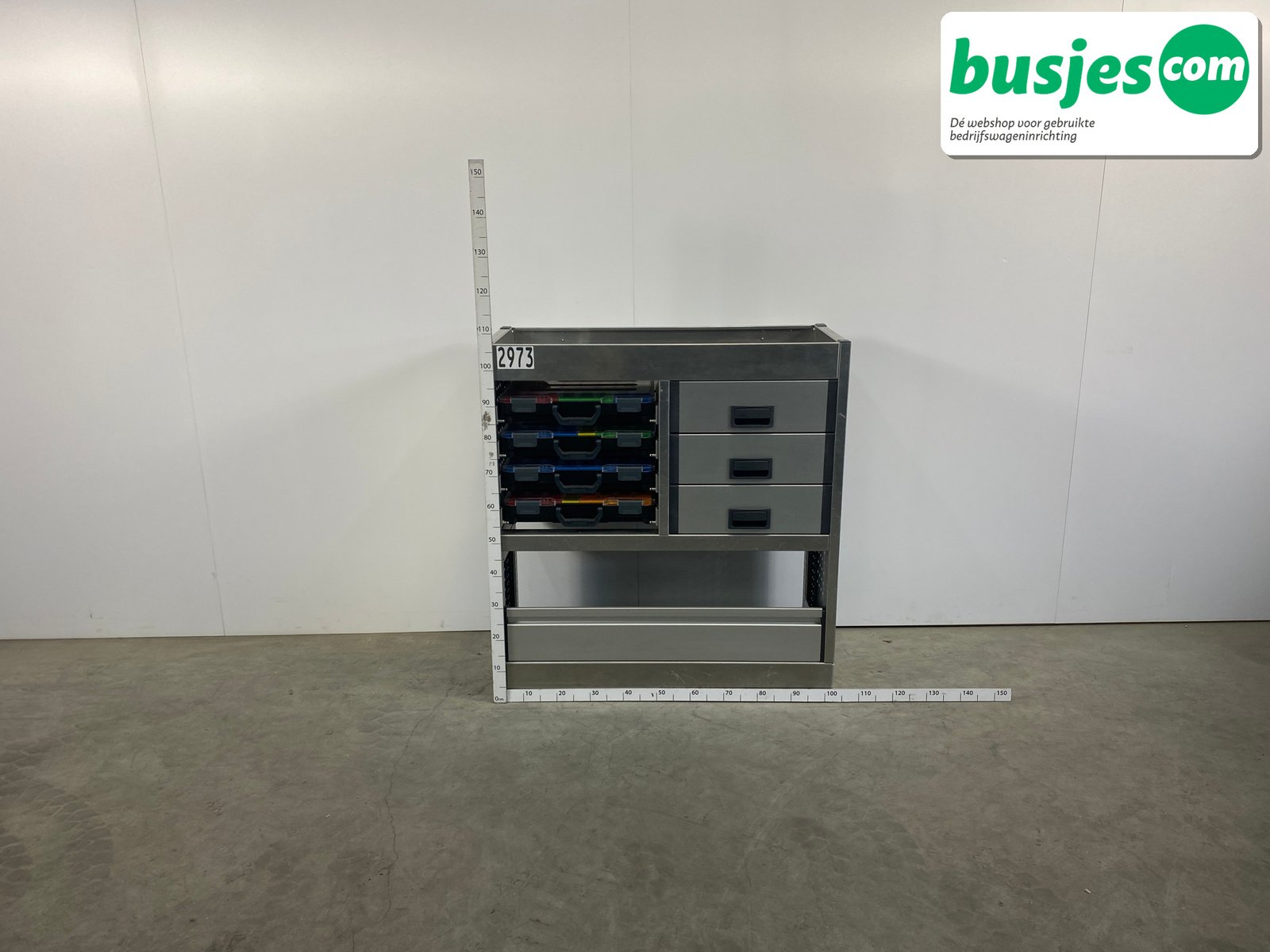 👉 Belangrijk: dit is een gebruikte inrichting. De staat is goed, maar check de afmetingen goed. Meet je voertuig zelf na of laat het doen, zodat je zeker weet dat het past.