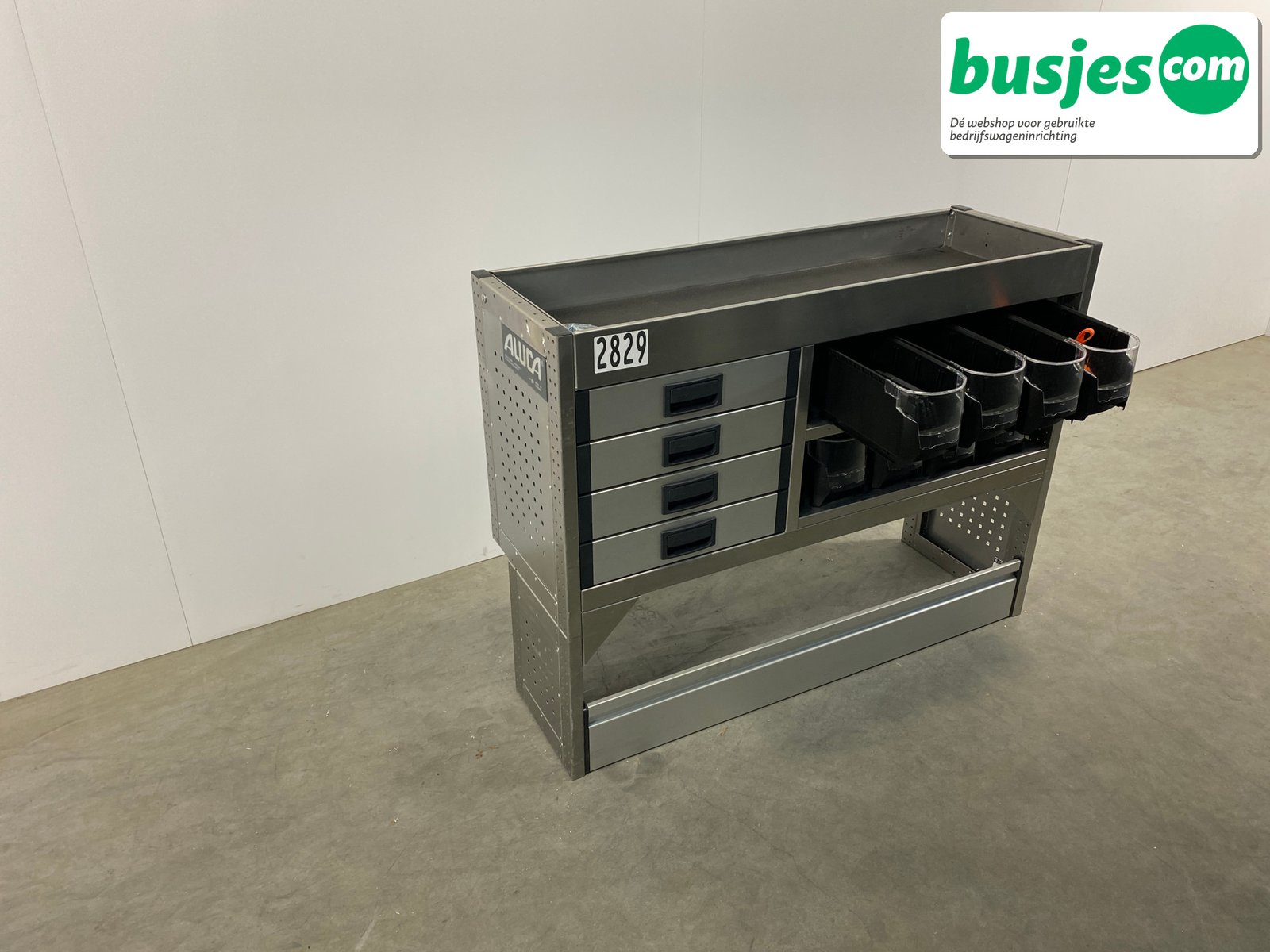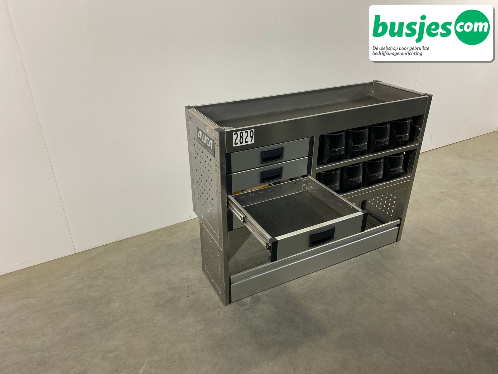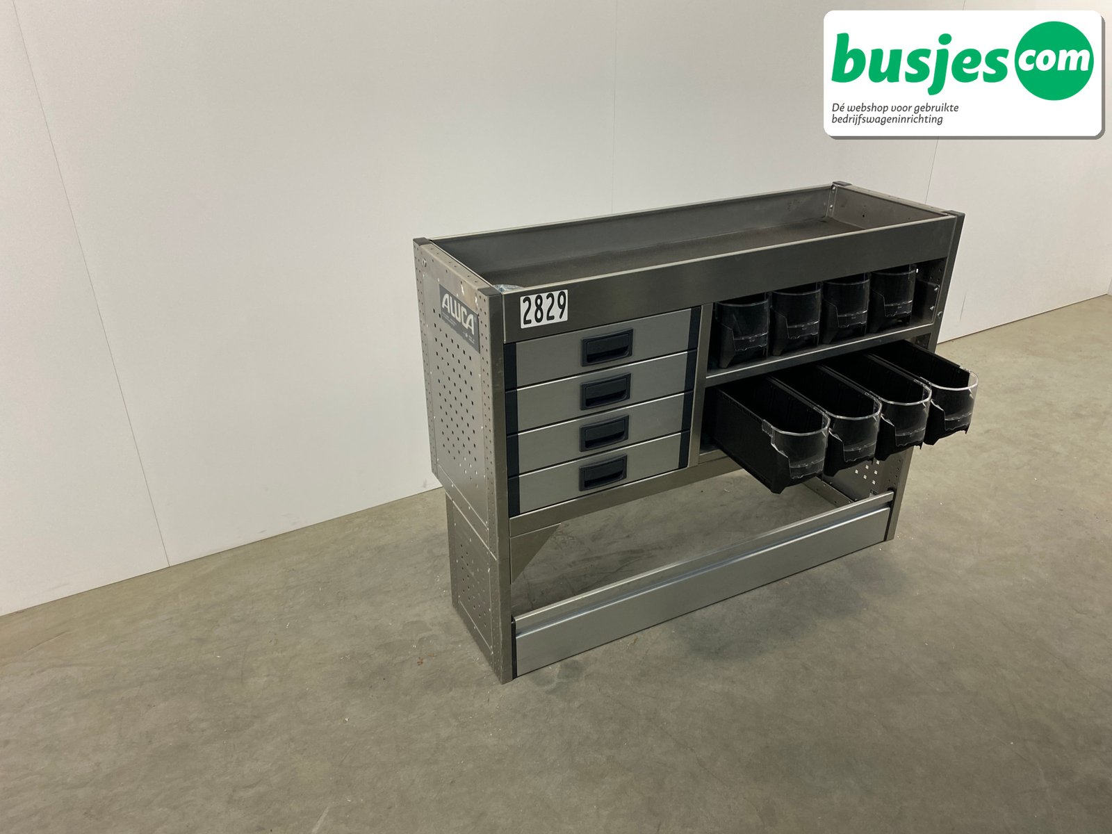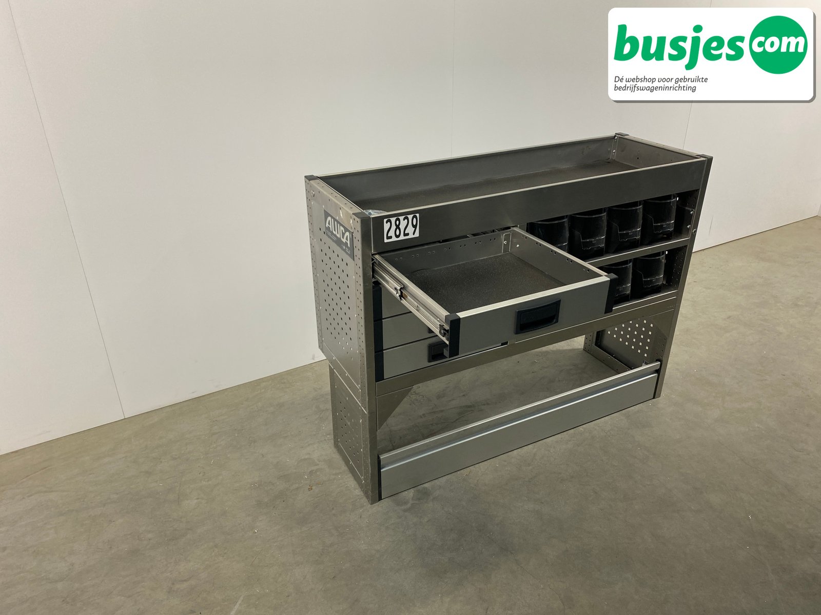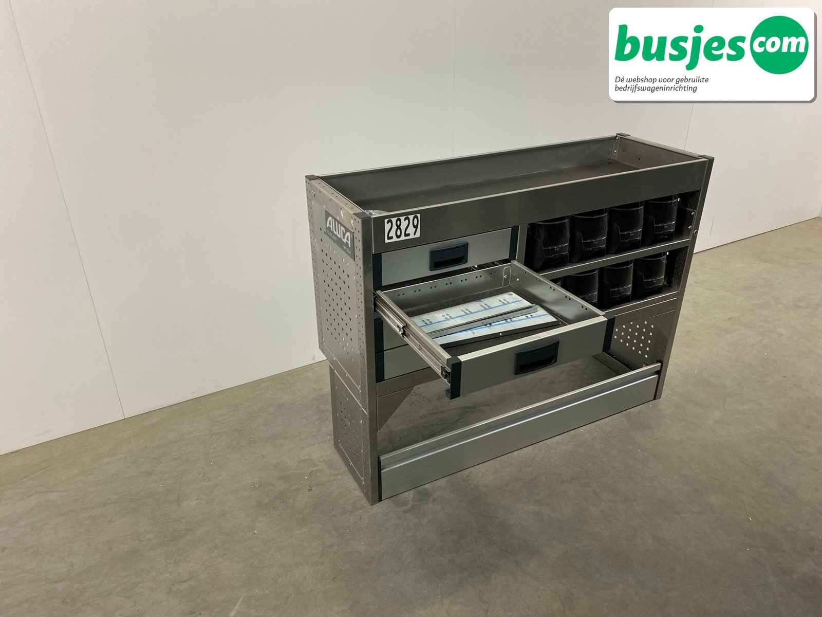 Deze gebruikte Aluca aluminium bedrijfswageninrichting is nog in topvorm. Gemaakt om lang mee te gaan én klaar voor een tweede ronde. Licht in gewicht, sterk als staal, en perfect voor het overzichtelijk vervoeren van je gereedschap en materiaal.