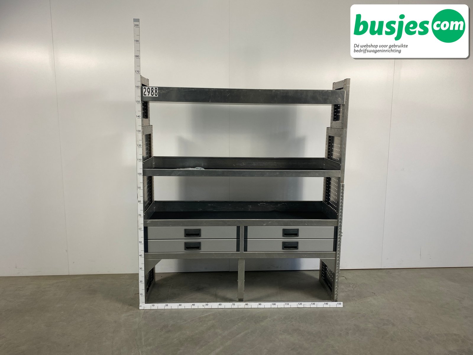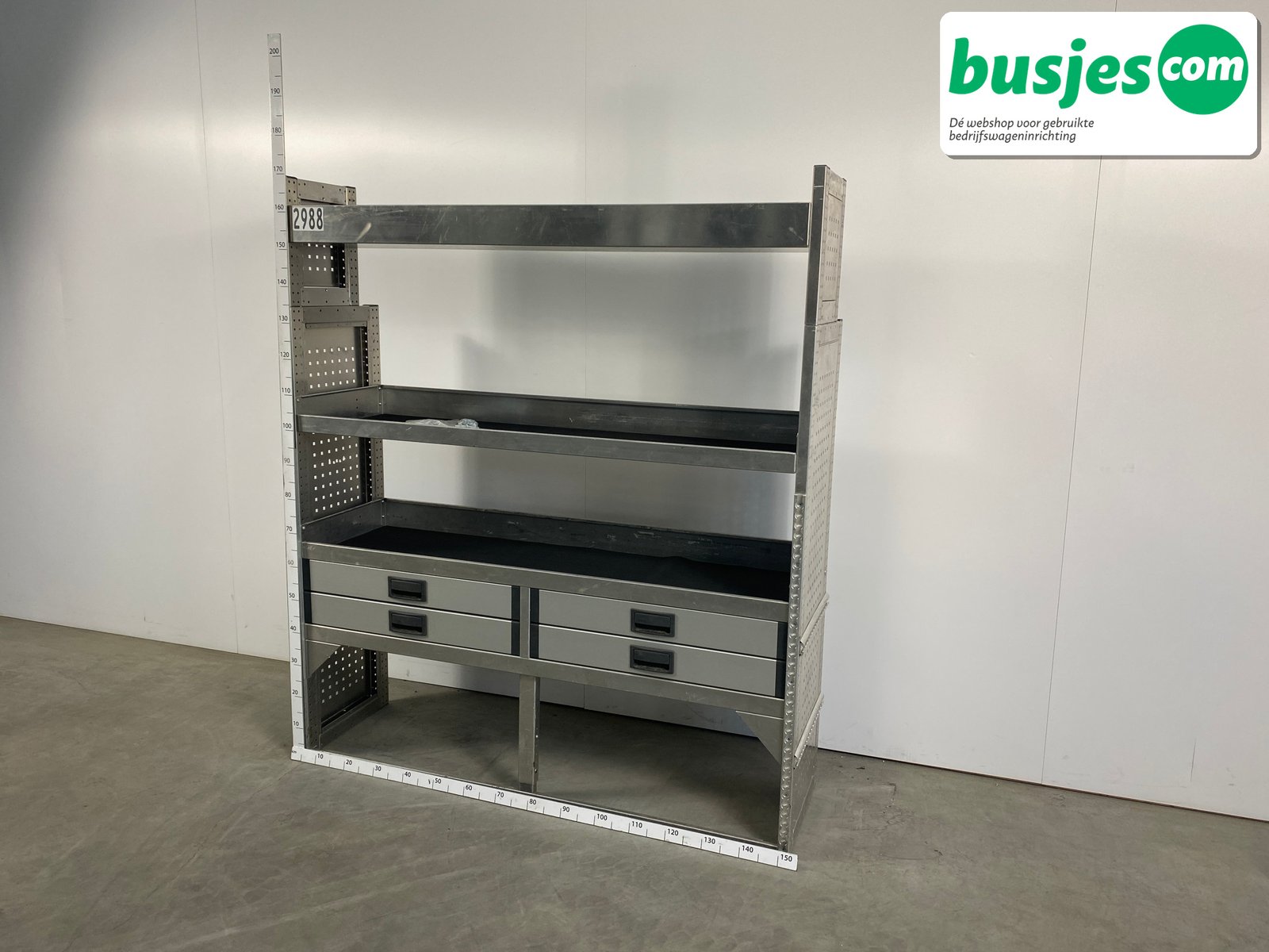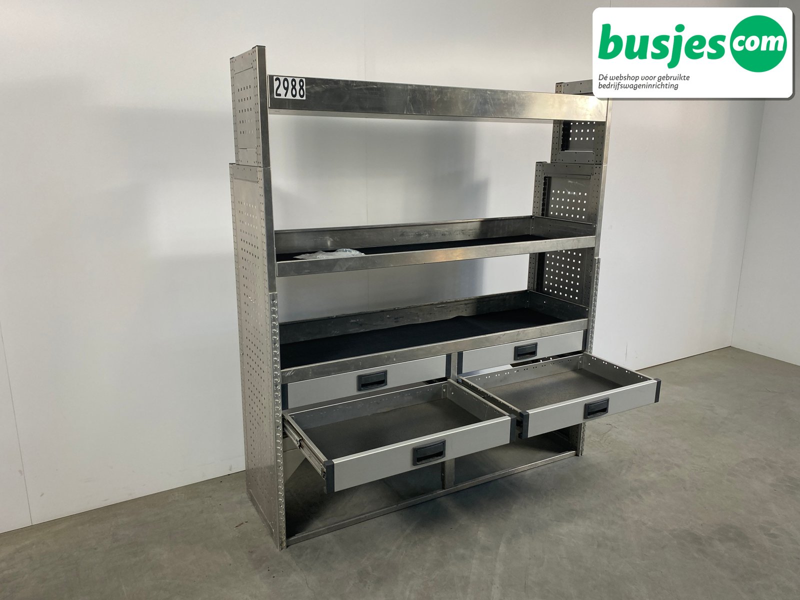 👉 Belangrijk: dit is een gebruikte inrichting. De staat is goed, maar check de afmetingen goed. Meet je voertuig zelf na of laat het doen, zodat je zeker weet dat het past.