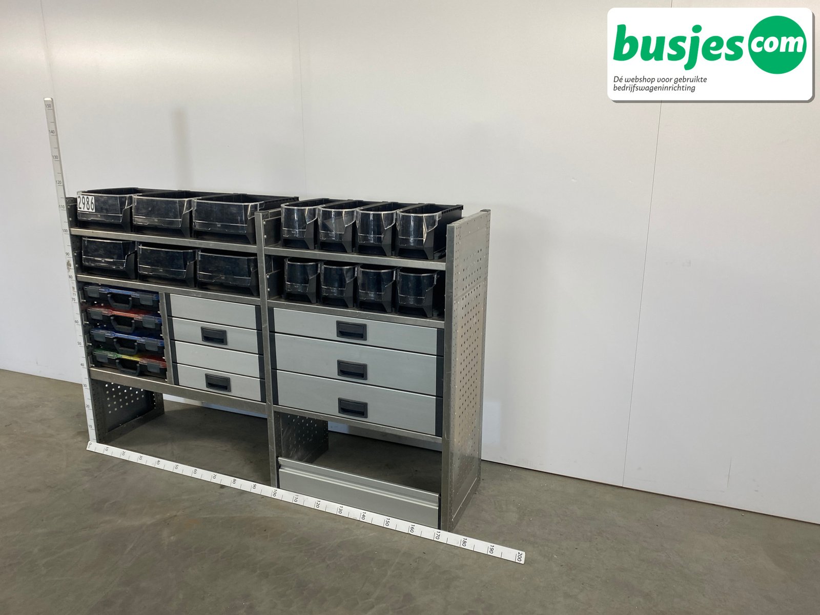 👉 Belangrijk: dit is een gebruikte inrichting. De staat is goed, maar check de afmetingen goed. Meet je voertuig zelf na of laat het doen, zodat je zeker weet dat het past.